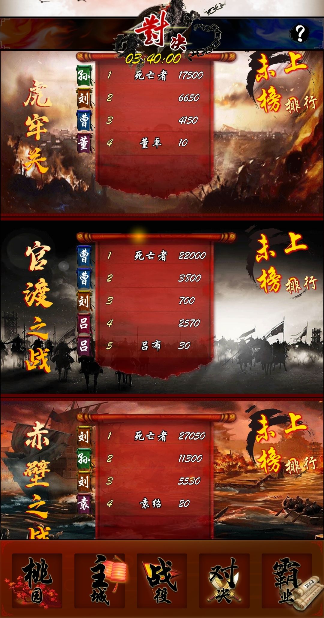 对决分三场,虎牢关,官渡,赤壁