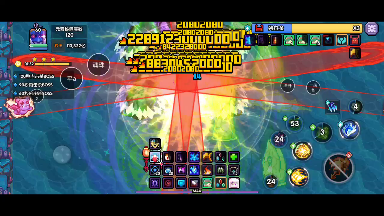 水图比较好操作,不用连点器也能提速,开场的时候秒开魂系,往左上或者右上走,再开技能,离boss越近,电耗子跳跃的范围就会越小,第一波列拉金的球就推不开耗子,然后挂机就可以了。