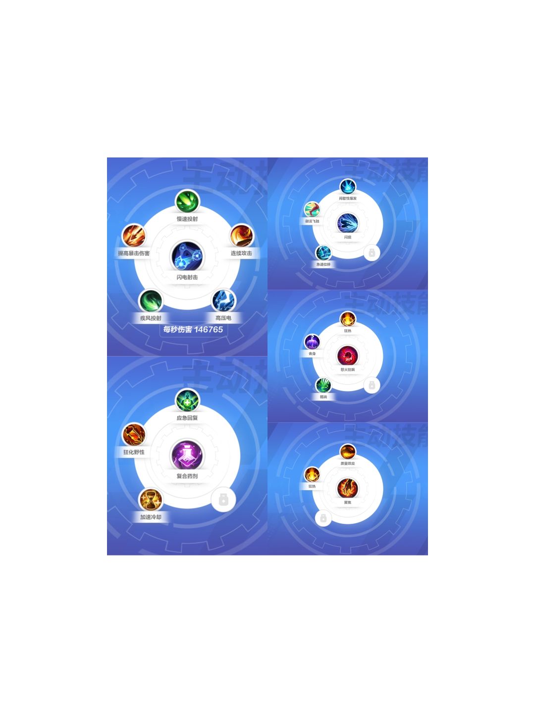 技能闪电射击,用于清理小怪,弹射秒怪快