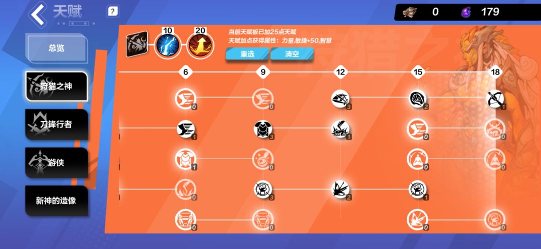 天赋带 狩猎之神,游侠,刀锋