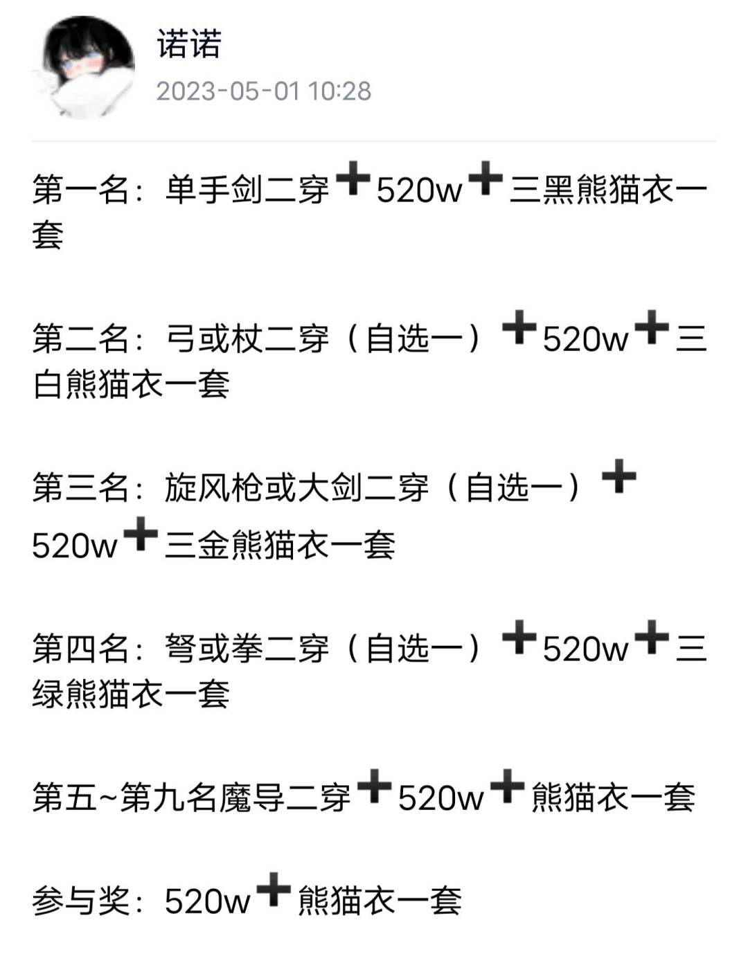 本次活动到此结束!请按最终总排名到(I诺诺)会长领奖!祝大家游戏愉快!
