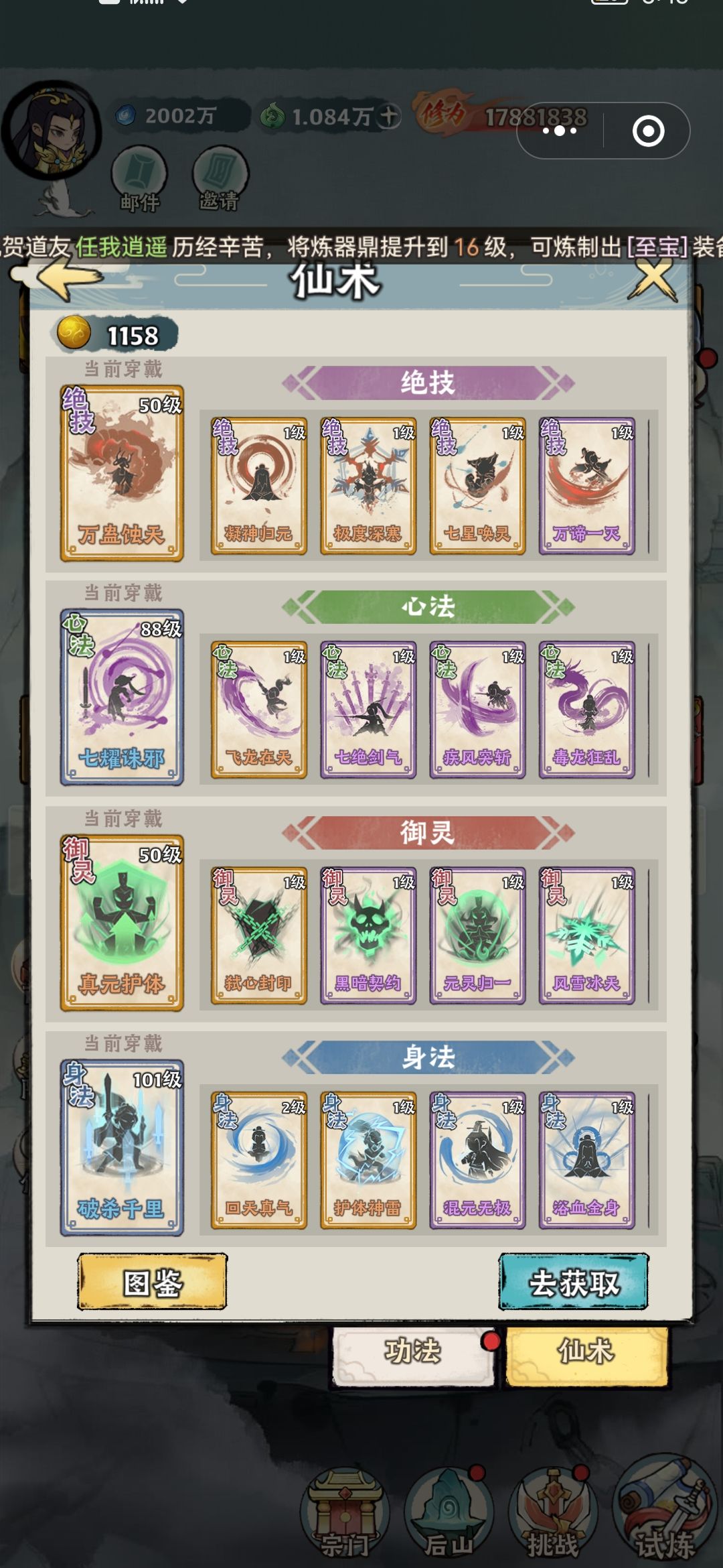 6.幻境够就是仙术活动就,这个就没什么排名了前期留着等活动抽就可以了,最好的是资源橙色,可以不要后期都有。有了更好。仙术有诛邪,破杀,就不用抽了。