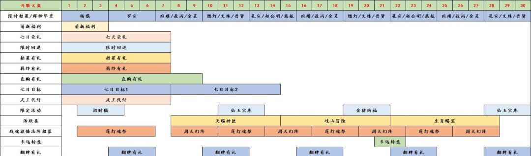 活动篇:新手期会出两轮招募榜,袁洪和云霄榜,不建议花玉抽,玉需要攒着抽瘟癀孔雀。招募榜后是神匣活动(奖励是限定神将相关),岐山活动(第一次活动奖励是燃灯),生肖活动(奖励是瘟癀,特别注意只有生肖活动道具生肖灵蕴是可以存的,其它活动结束道具清除)。小中氪玩家可以考虑氪点神匣和岐山。生肖不建议氪,花费较大,性价比一般。