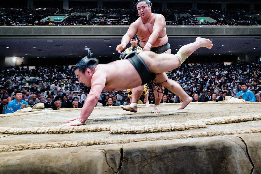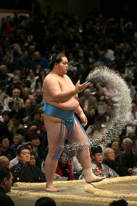 日本东京的体育场内,重达150公斤重的选手裹着缠腰布,表情严肃,摇摇晃晃地走进擂台。当掌声响起时,他们在被称为土俵(dohyo)的竞技台上将盐高高抛起洒满擂台,用来祈祷自己和家人健康,保佑自己不要受到伤害。
