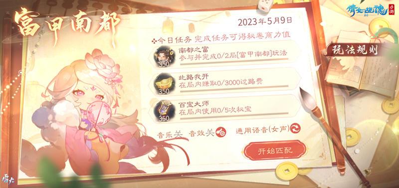 南都繁华世界事件于4月24日-8月23日自画中开启。全新【富甲南都】玩法开放,运筹帷幄方能所向披靡。玩法过程中购置地产、买卖货物、使用道具,总资产积累最多的人将获得本局胜利。每日更能接取一个富甲南都随机任务,可在富甲南都的博弈中完成任务。更有各种趣味方言语音包还原乡音。