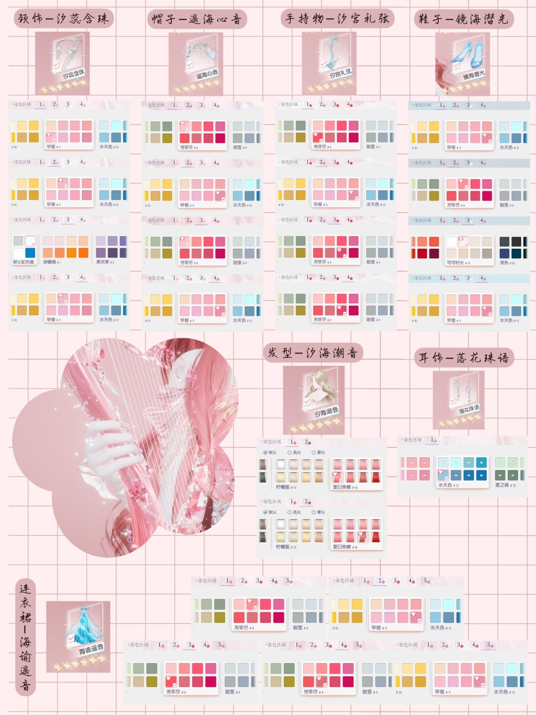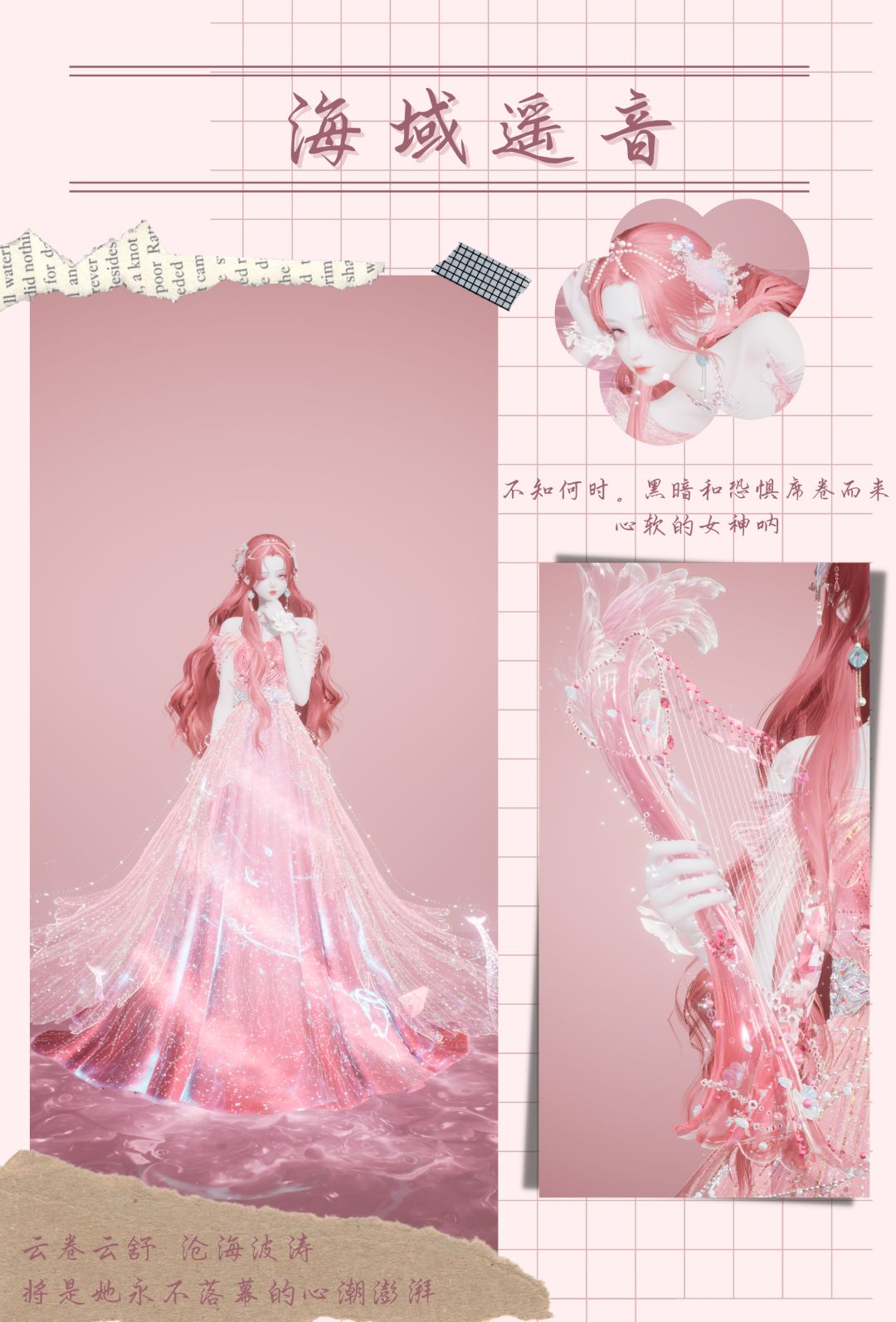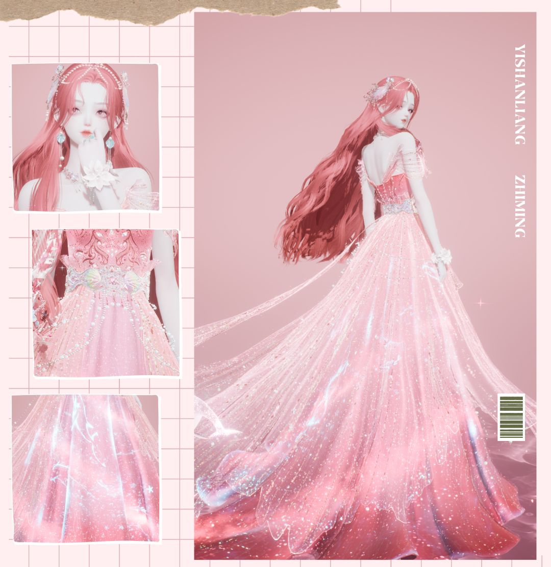 主要装扮为连衣裙-海谕遥音、发型-汐海潮音,整体颜色为粉色(这件连衣裙真的好美!!太爱了~)