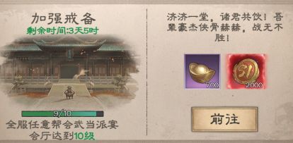 建设这里要注意,第一帮会能力越大责任越大,前期应该全力建设武当,完成赛季任务获取”丰厚“奖励,之后按收益从高到低建设