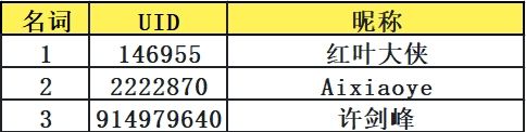 恭喜以下三位玩家获得前三名。