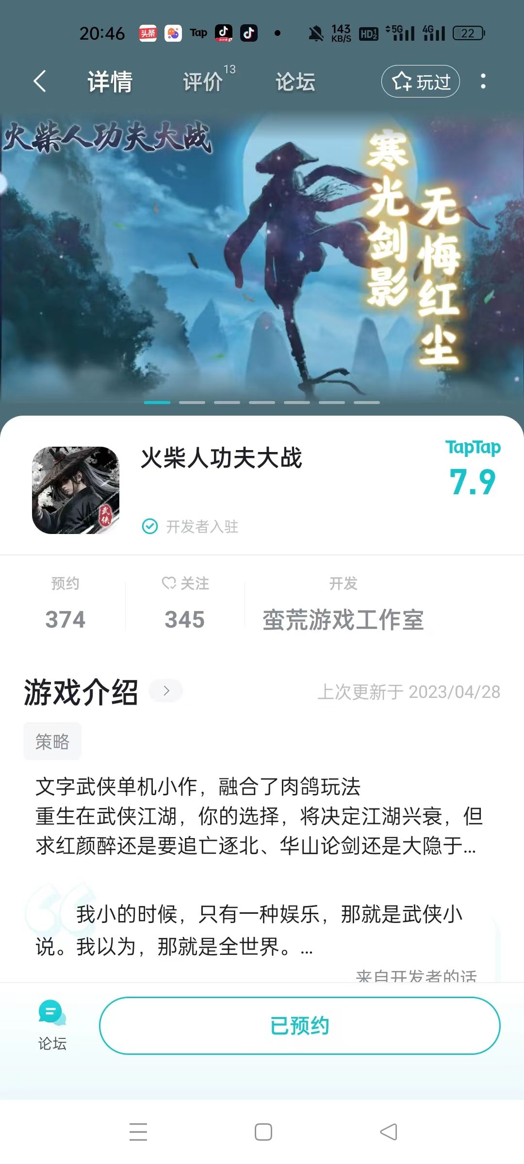 预约《火柴人功夫大战》,并在该帖内发送预约成功的截图,如:以下示例