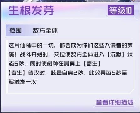 ♥ 特性简介:开局绝对沉默5秒,pvp优先对面释放技能;寄生附带眩晕,配合天赋荆棘之藤有额外伤害~(已确认过,绝对的沉默和寄生御神是无解的)