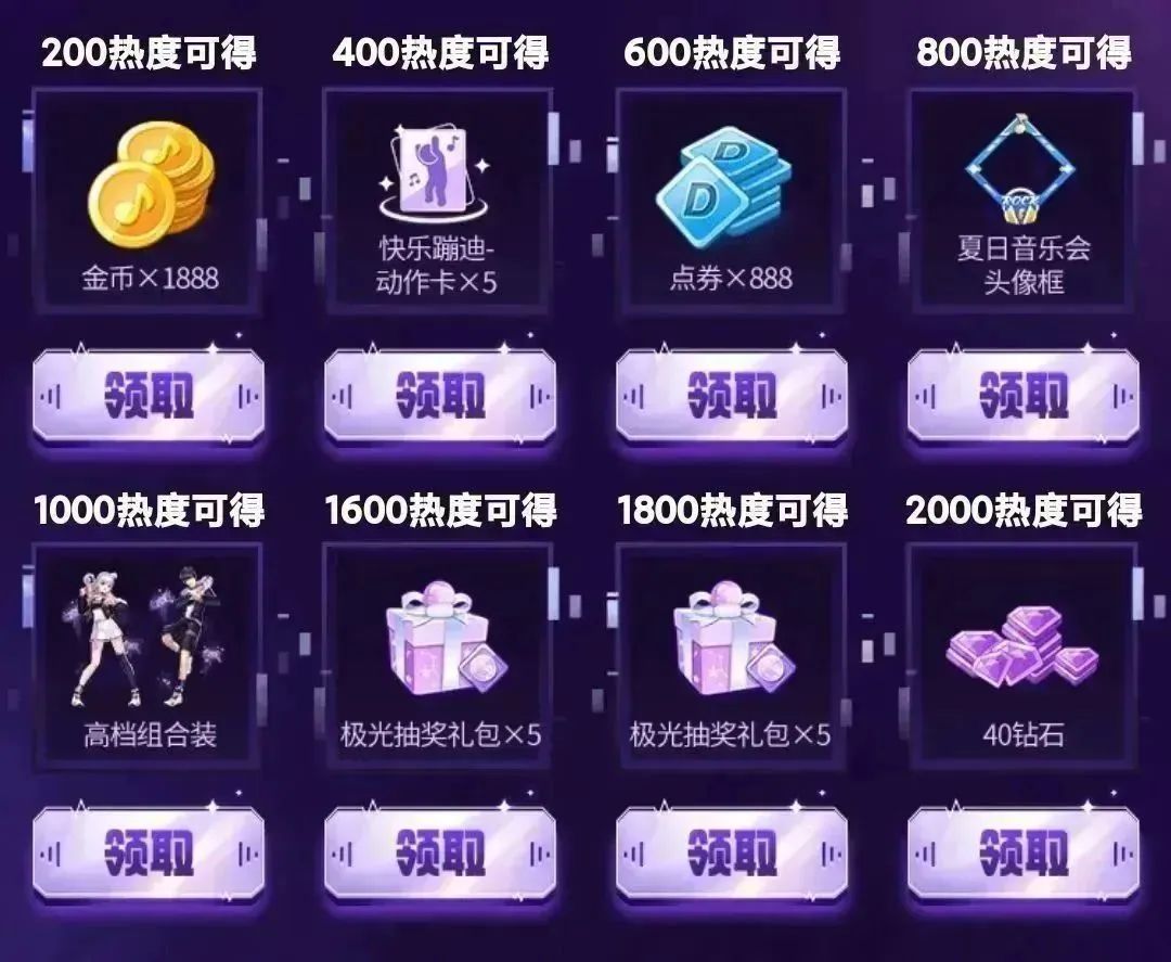 完成页面上的对应任务,即可获取热度值。热度值越高,玩家的直播间效果越丰富。达到要求的热度值可以兑换40钻石、高档组合装、极光抽奖礼包等热度奖励。