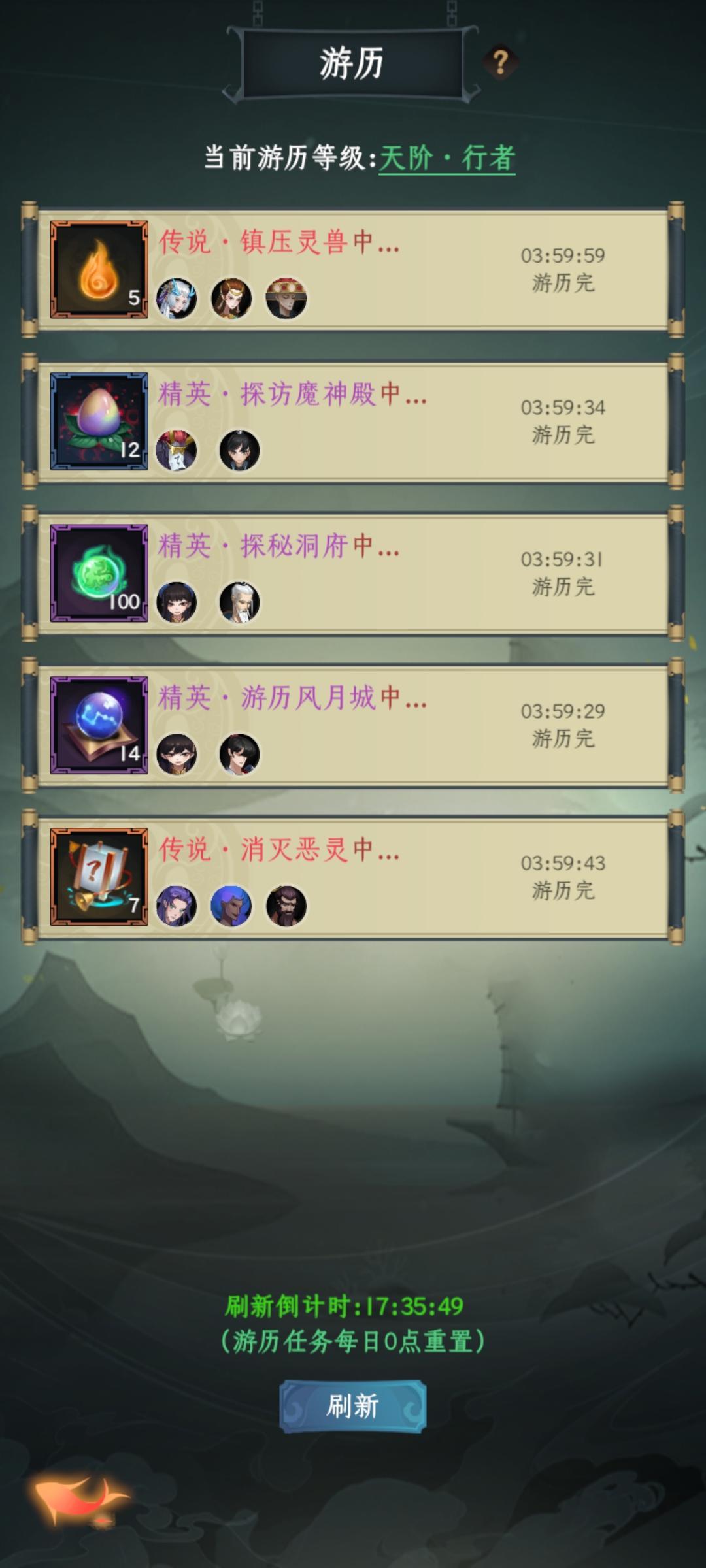 刷新到5个精英及以上品质同伴游历