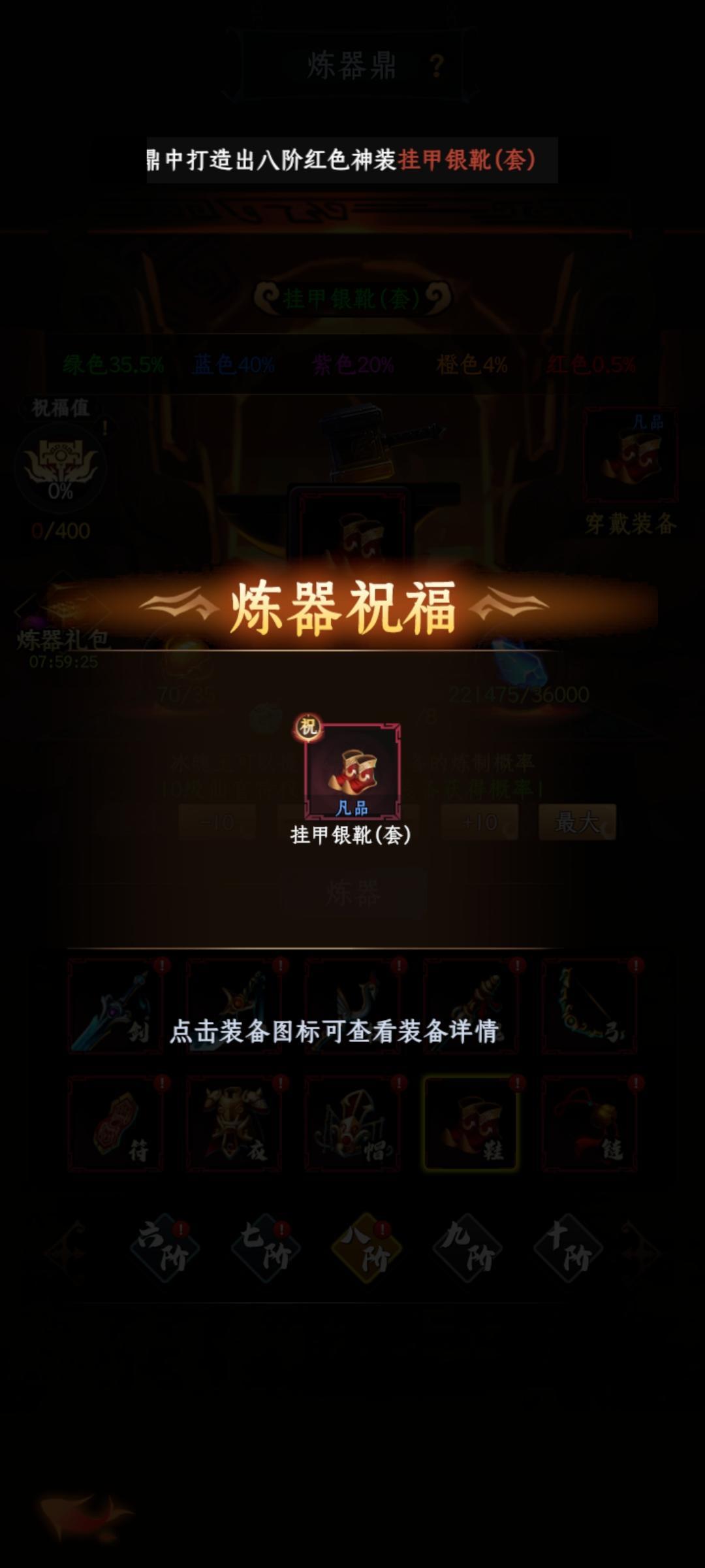 打造1件任意阶数红装(截图中需有出红色装备的公告)