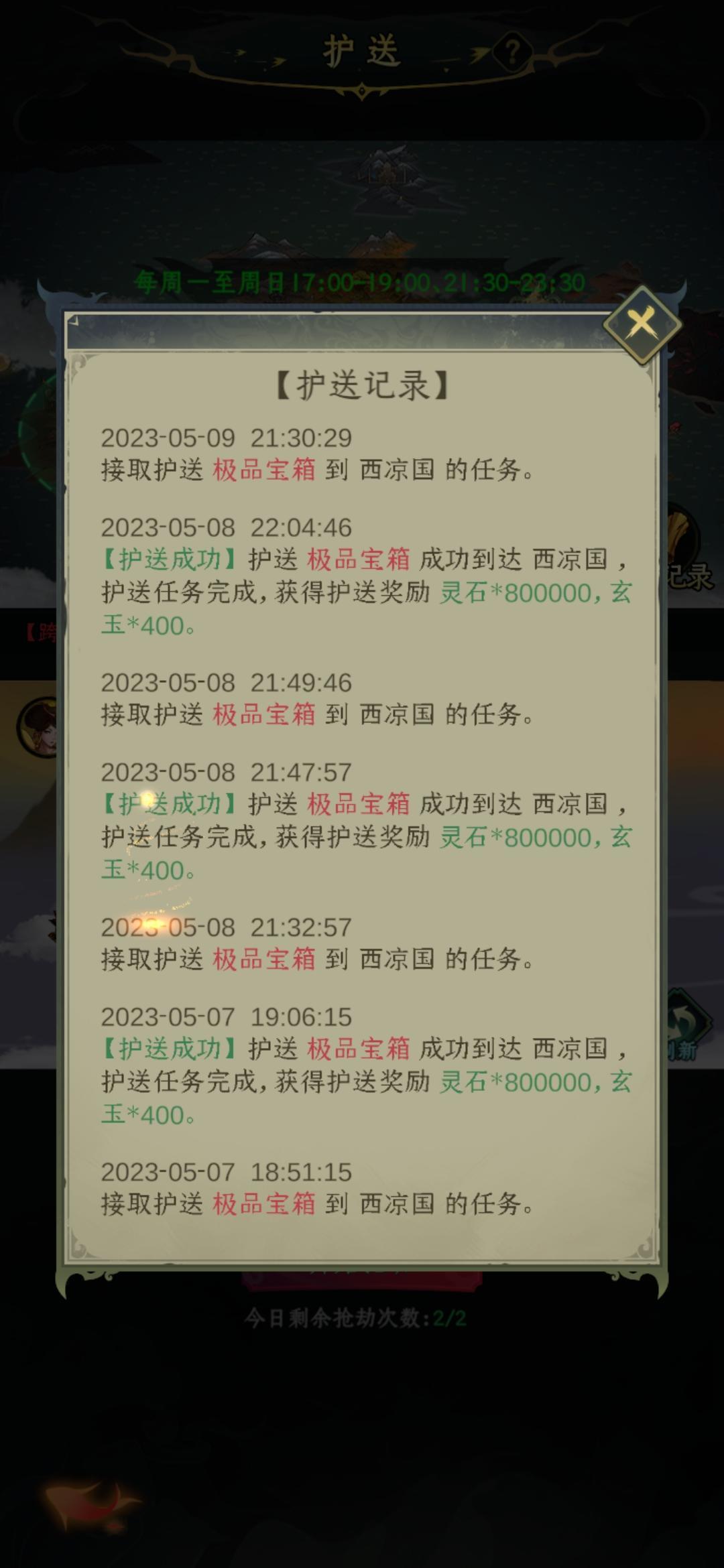 护送1次极品宝箱