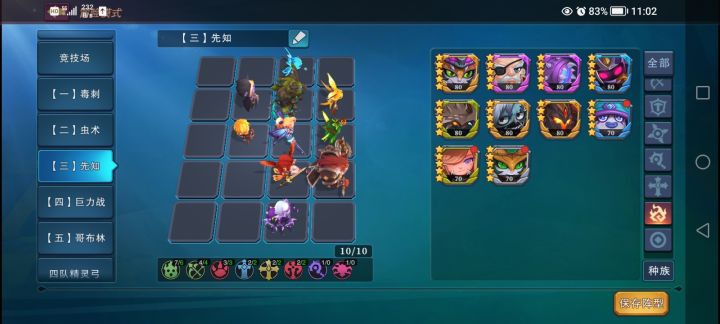 高练度的蜘蛛对后排脆皮的威胁程度很大,3野兽组成铁3角,都是自身带成长的佣兵,和先知一样相辅相成。