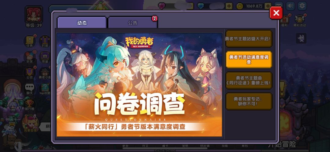 为了给勇者们带来更好的游戏活动体验,我们诚邀您百忙之中抽空参与问卷调查!