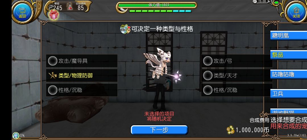 这一步只能选择一个,剩下的会在亲本之间随机,列如我想要物理防御+沉稳的成品,我就需要一只物理防御+沉稳的宠物,一只只有沉稳的宠物,在选择的时候类型选物理防御,性格只能在两个沉稳里随机()