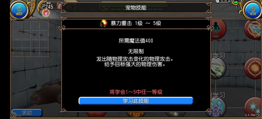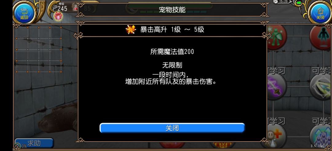 一只宠物,可以学习三个技能,第一次技能可以手动选择,剩下的技能会随机学习与第一个技能相连的其中一个,以buff宠为例,如果我想学习暴击高升,就必须先学旁边的暴力重击,然后看脸能不能随机到暴击高升,这就是赌技能
