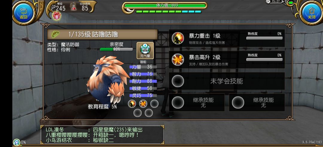 宠物训练,教育技能都会消耗宠物元气,注意不要把元气用完,它自己就会慢慢回复,当然,如果用完了元气,也可以直接灌生命剂,非常的方便好用。