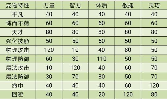 性格等:影响宠物行动规律和属性