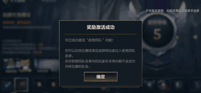 游戏中所有“排位拉黑”名称统一更改为“拒绝同队”,并且“拒绝同队”按钮位置自举报界面移动至结算界面。