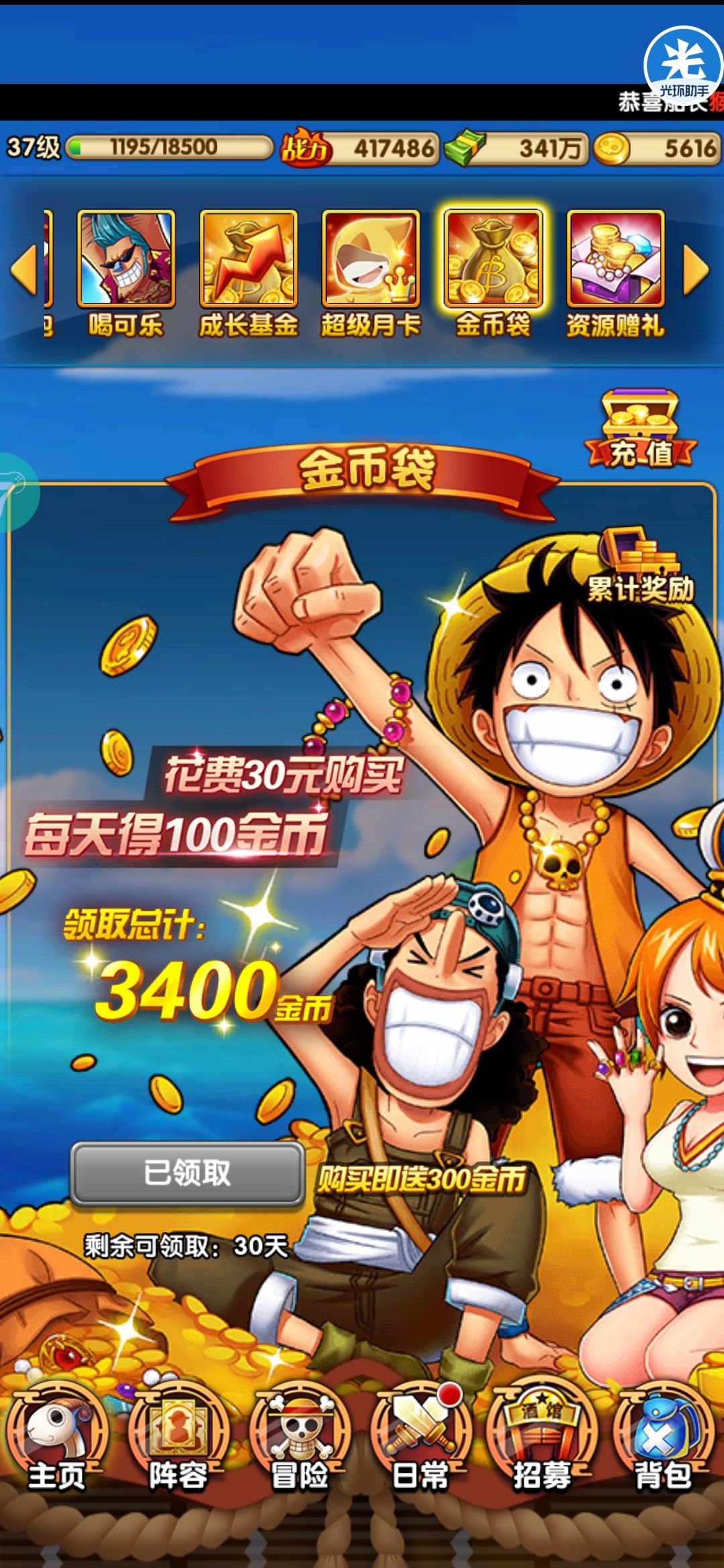充了一个金币袋