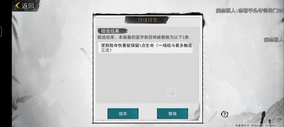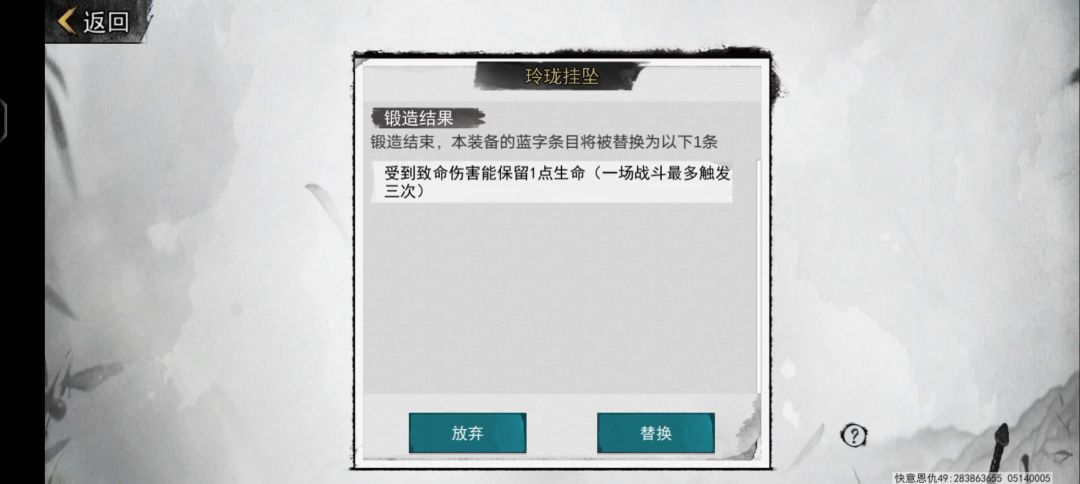 将得到的装备放在一号位,强化+5的真·大理玉玺放在二号位,几率获得一个或者两个词条,这叫做1+1等于1或者2