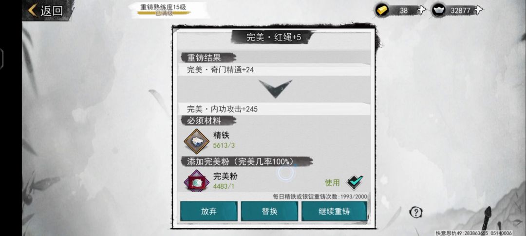 剩下的就是慢慢提纯了,将二命锻造到白装上重复刚才的操作,由于2+3有两词条保底,几率大幅提升