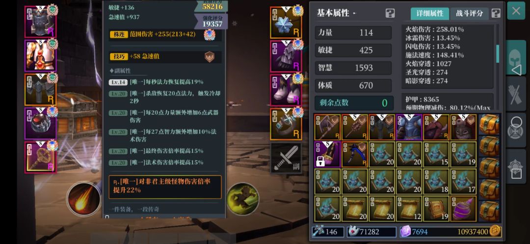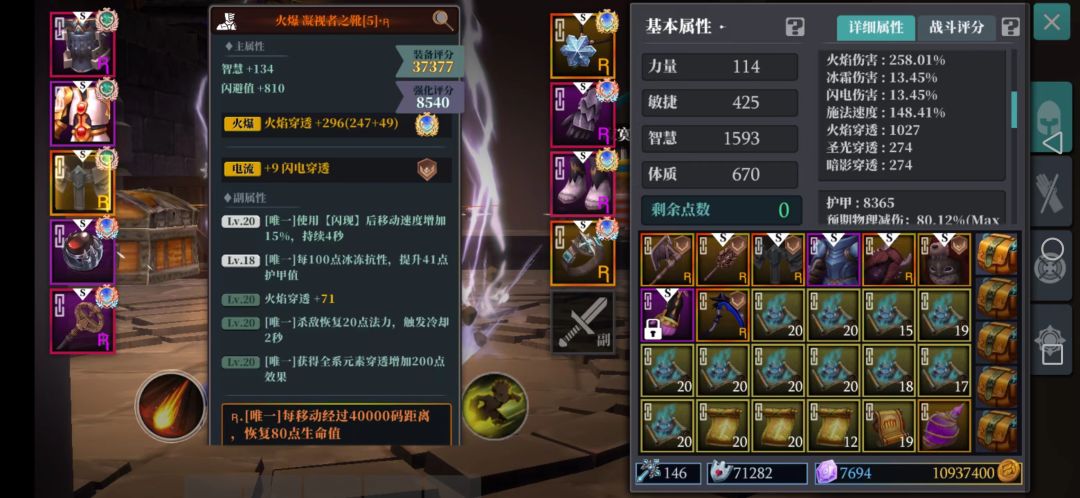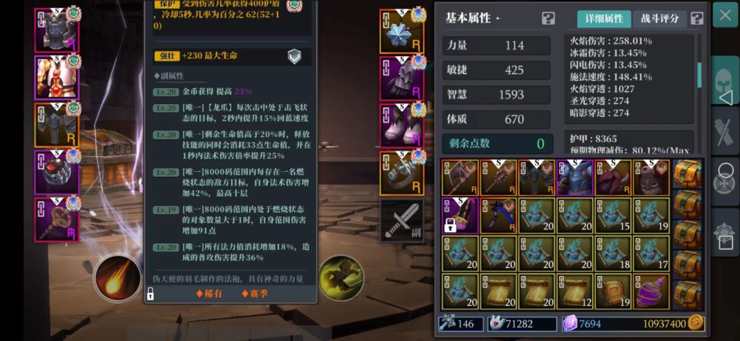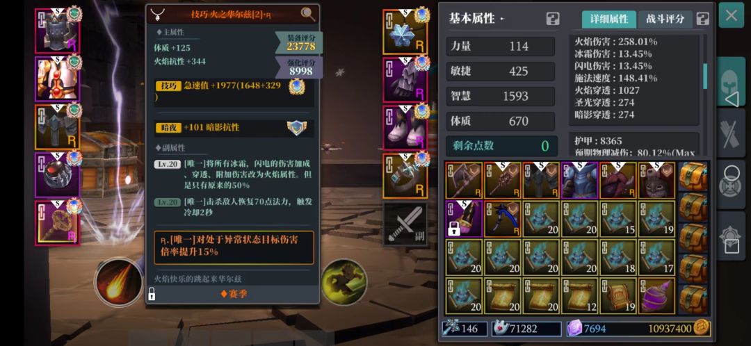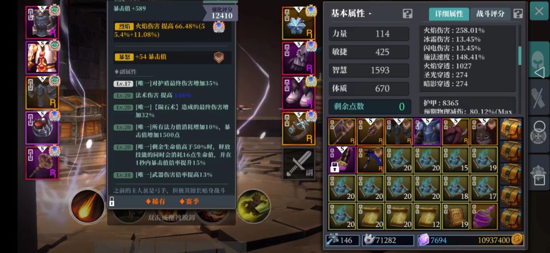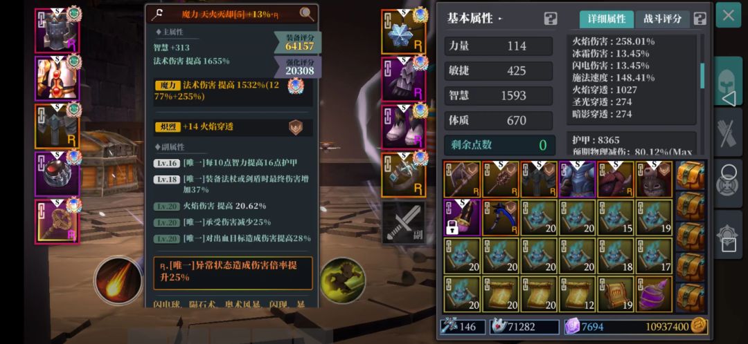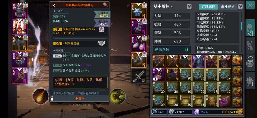 火法吃面板,暴击值、暴击伤害、法术伤害、火焰伤害越高越好