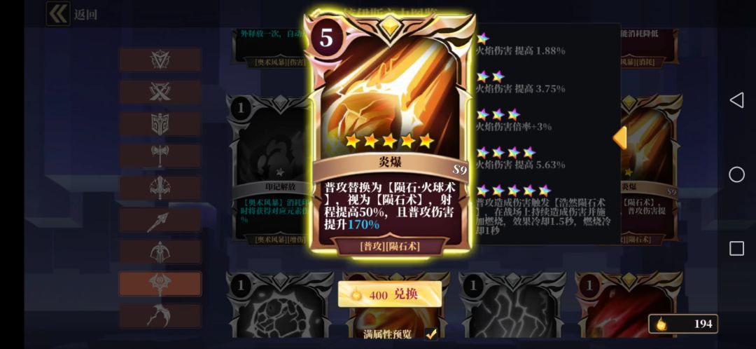 炎爆(必备卡),五星效果为浩然陨石术,伤害不用多说了