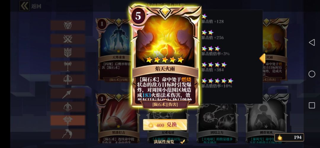(3)焰天火雨(必备卡),增加暴击值倍率
