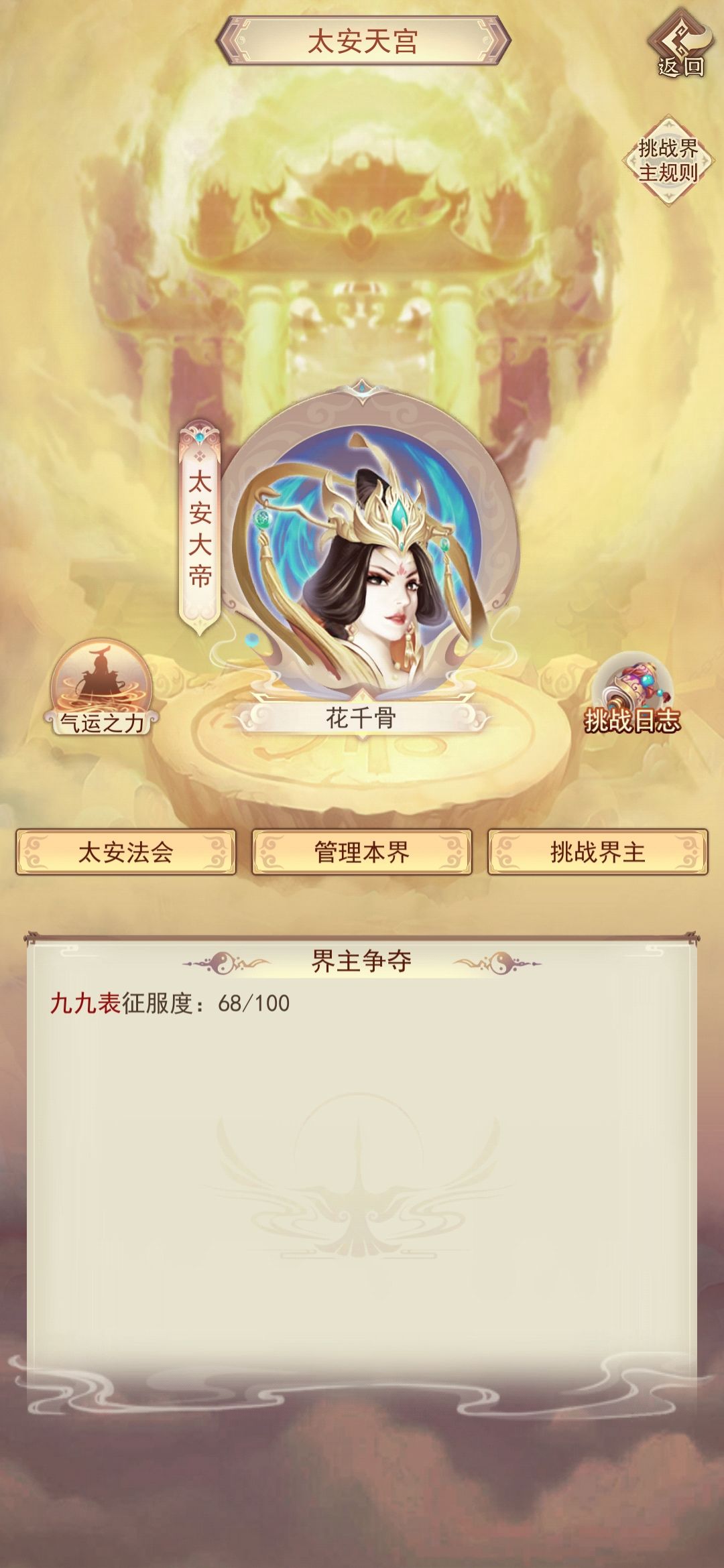 界主每天可以召开1次法会,法会全区道友可参与,每次持续10年,期间界主加成4倍,内场2倍(限20人),外场1倍(无人数要求)