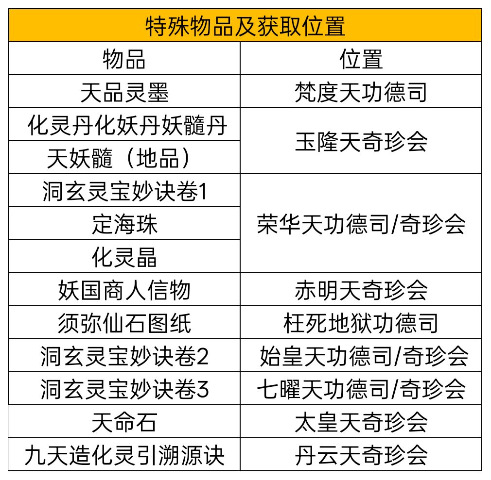 天引罗盘:不可升级,每探索10次消耗1点玄天灵液,有概率获得专属功法(清元心法:初始61)和专属天材地宝(八瓣仙兰:攻防100,生命300)