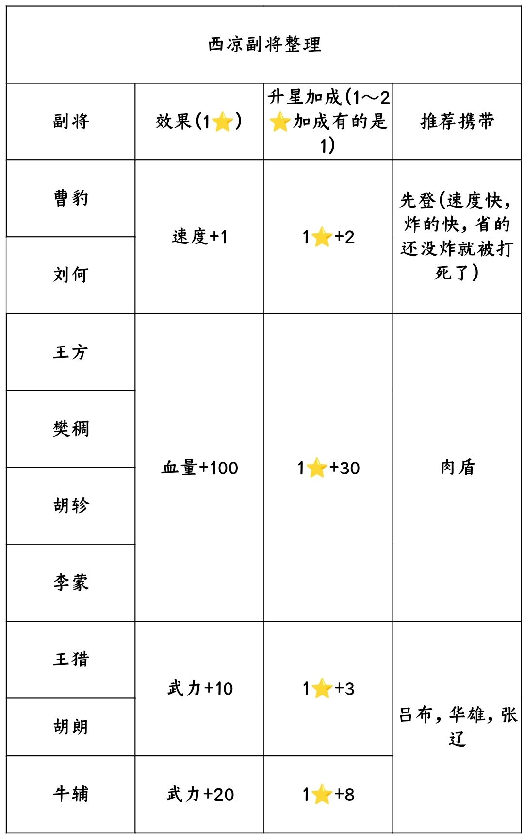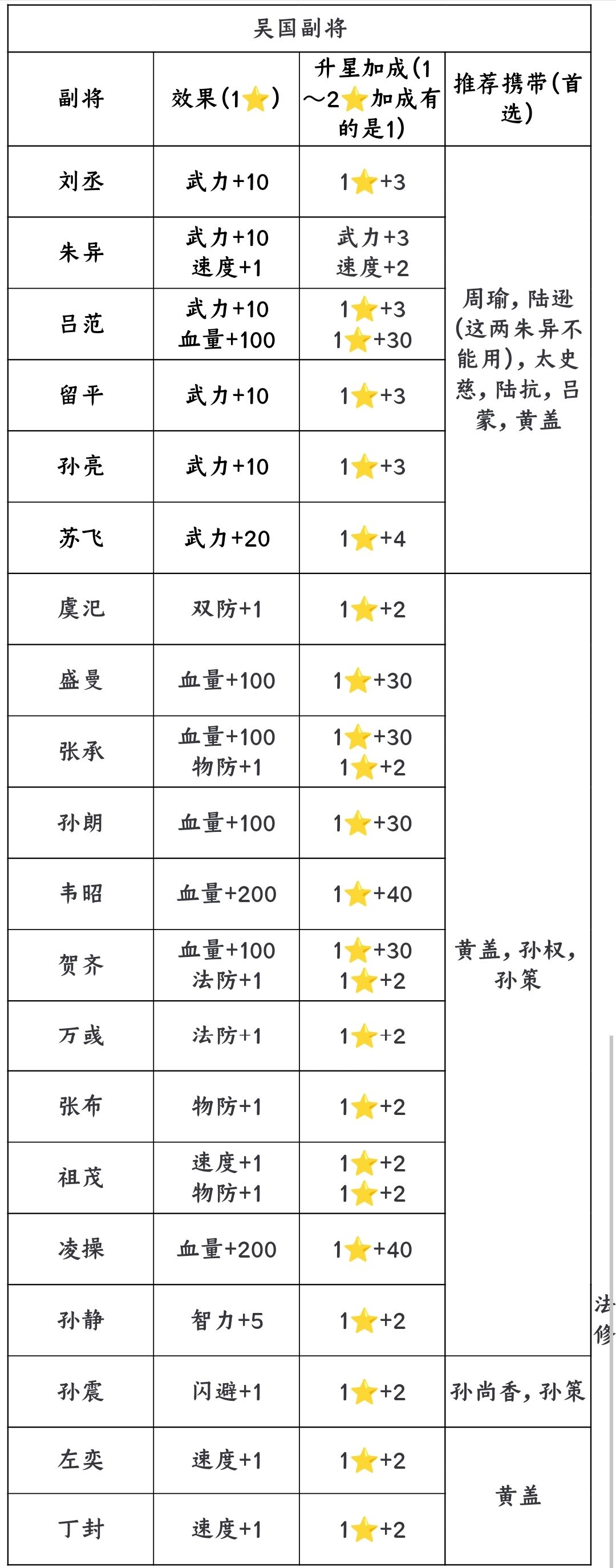 因为我目前把武将分为4类,武修,法修,双修和肉盾(T),所以对应类别武将选择副将就很有讲究。