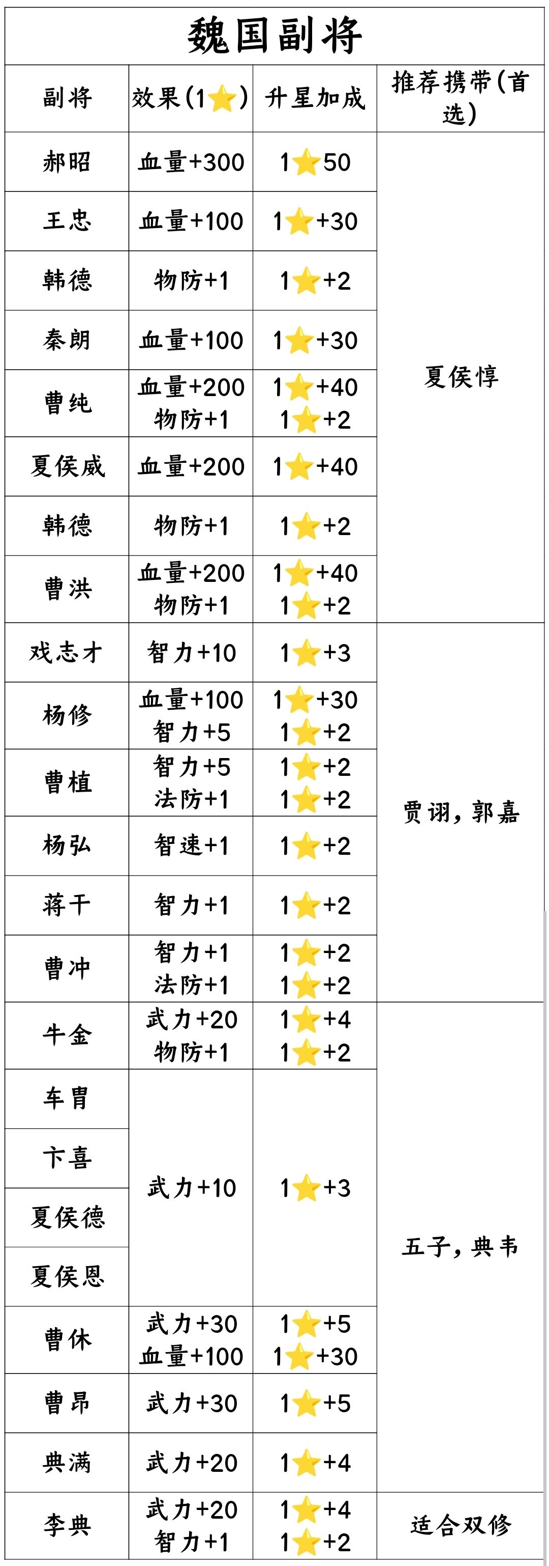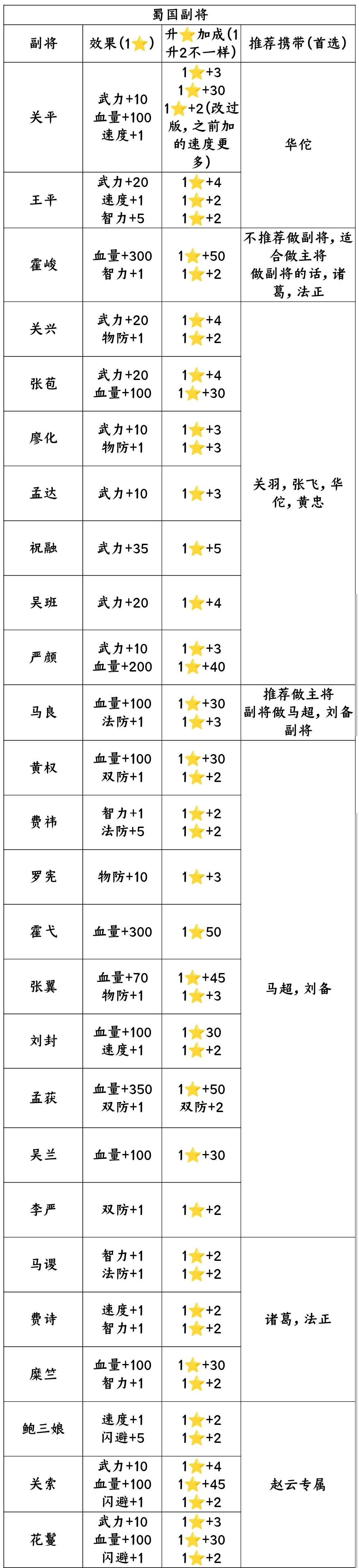 综上所述,武修和双修首选+武力的副将,法修首选+智力得副将,肉盾首选+血量,+物防,+法防的将