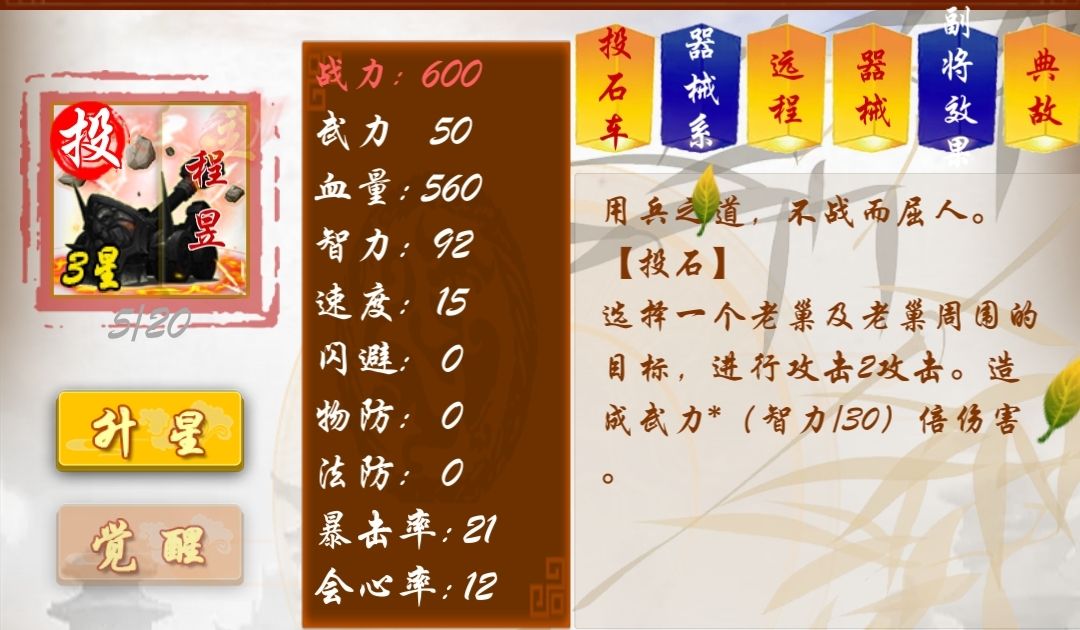 副将的星级越高,加成越高。
