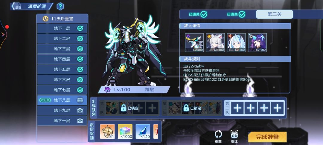 第一关没什么好讲的,我用的弟弟龙加银河,银河保弟弟龙嘎嘎输出就行了,主要是第二关,无冕凯撒首发,开局凯撒踩一脚混乱对面加限制提属三回合,无冕正常打,就是先开个二技能,第二回合凯撒换星龙,第三回合星龙二技能提属,到了第四回合星龙二级速就可以每二回合三级能锁一次属一直拿捏对面了,无冕嘎嘎输出就行,第三关也简单,卡奥斯梵天直接砍,梵天速度低于卡奥斯就行,两次抵挡伤害被卡奥斯打掉,梵天直接一剑开天