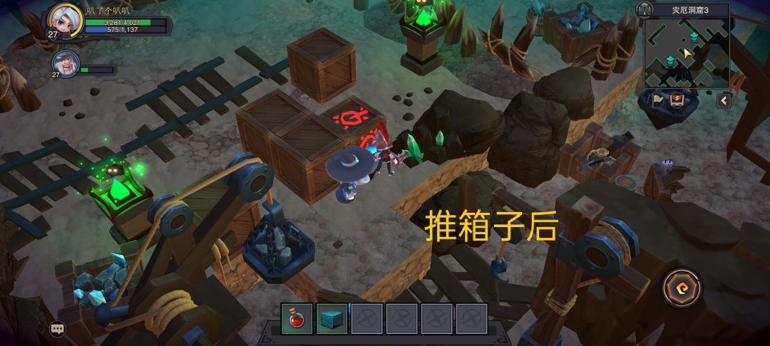 最后推箱子看清楚洞,推错回不来就得重新过关了【左下,左上】。打败boss后宝箱解锁。