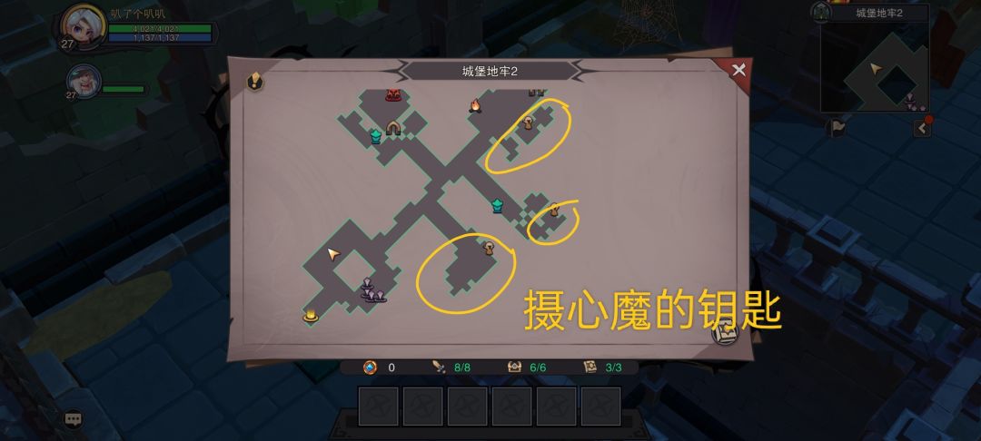 在城堡地牢4之前基本都是地图上明示宝箱位置,最多需要搭几个砖头,但是从地牢4开始就有小隐藏了,在这个帖子记录一下。