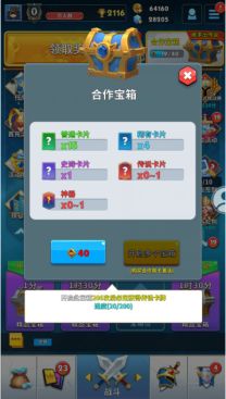 攒满40个合作币就可以去合作商城开启一次合作宝箱,宝箱内可开出英雄和神器奖励,开启200次合作宝箱必出传说英雄。