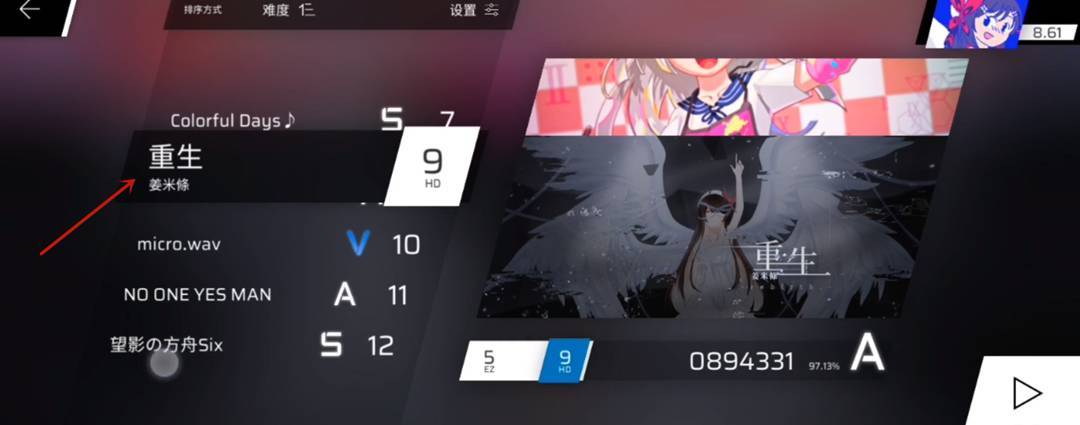 4、然后选择【望影の方舟six】这首歌,也是难度随便。
