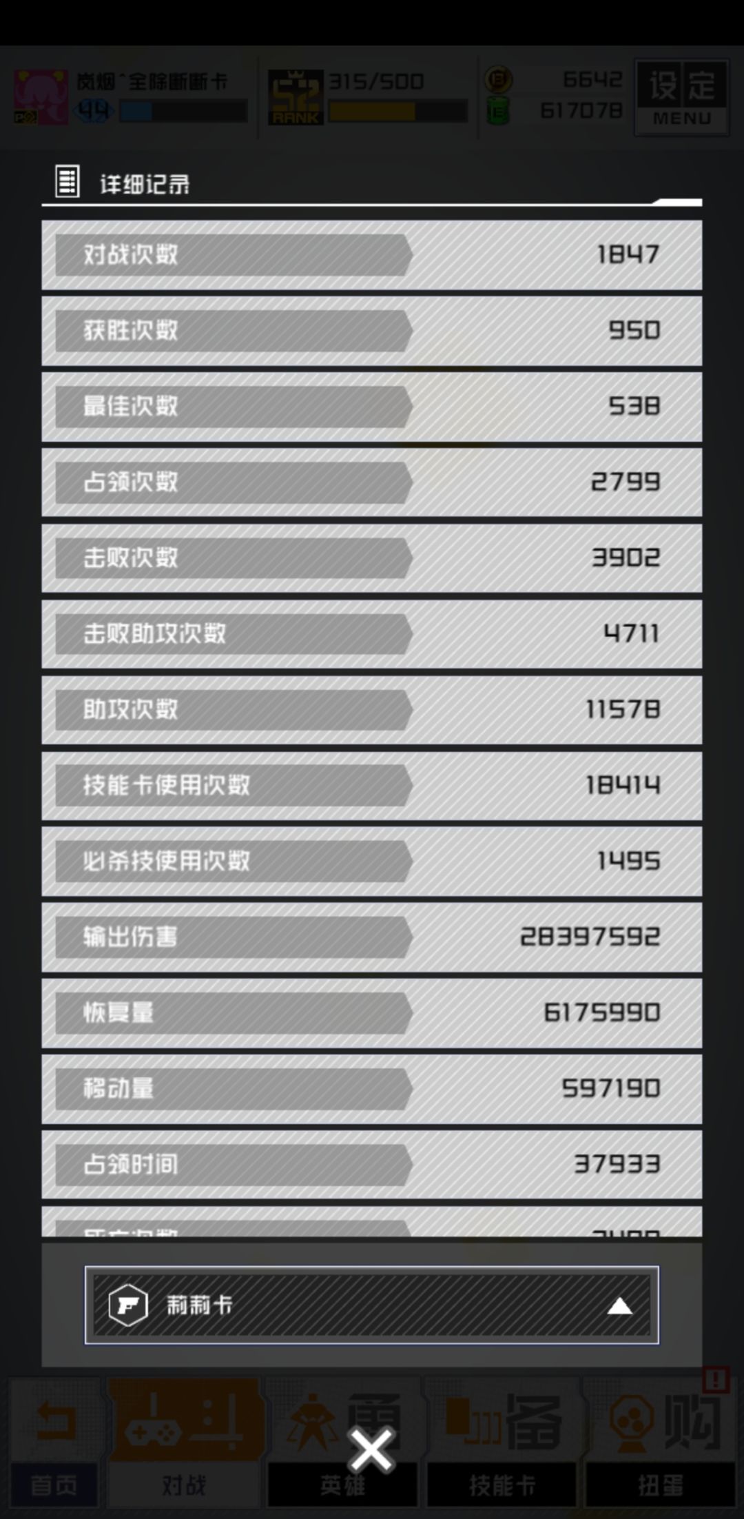 所以虽然莉莉卡在全英雄胜率垫底,还是头铁的继续用