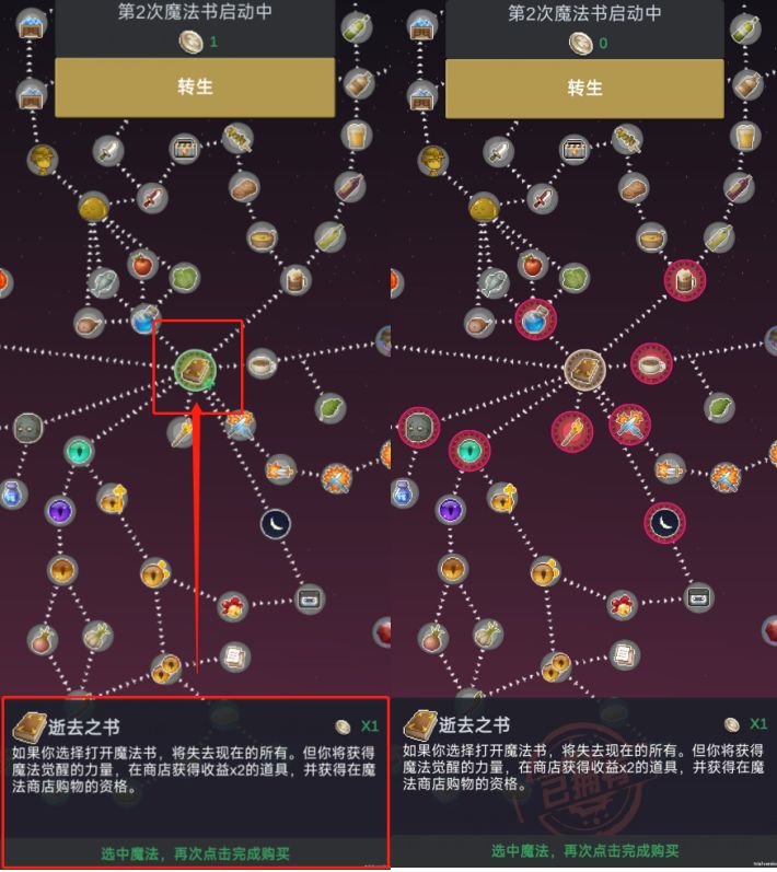 (1)1个魔法币:购买逝去之书,转生后收益x2
