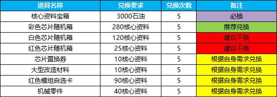 以下为兑换道具推荐表,可为各位幸存者提供一定参考