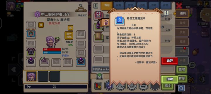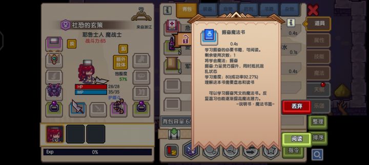 入坑游戏的第四天,猎人第三天,夜晚晚饭后,花了几个小时,在内心说服自己,迈过了那到心灵之门,于是第二角色栏开了,耶鲁士人魔战士,在照例跳过已经看过的开场动画,新手引导后,看着背包,我悟了,只见那背包里躺着一本技能书,魔法书:振奋,又看了魔法界面,初始自带技能:魔法之箭。
