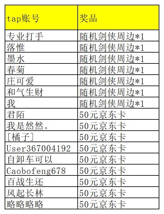 根据参与规则,以下是成功参与并获奖的少侠名单~