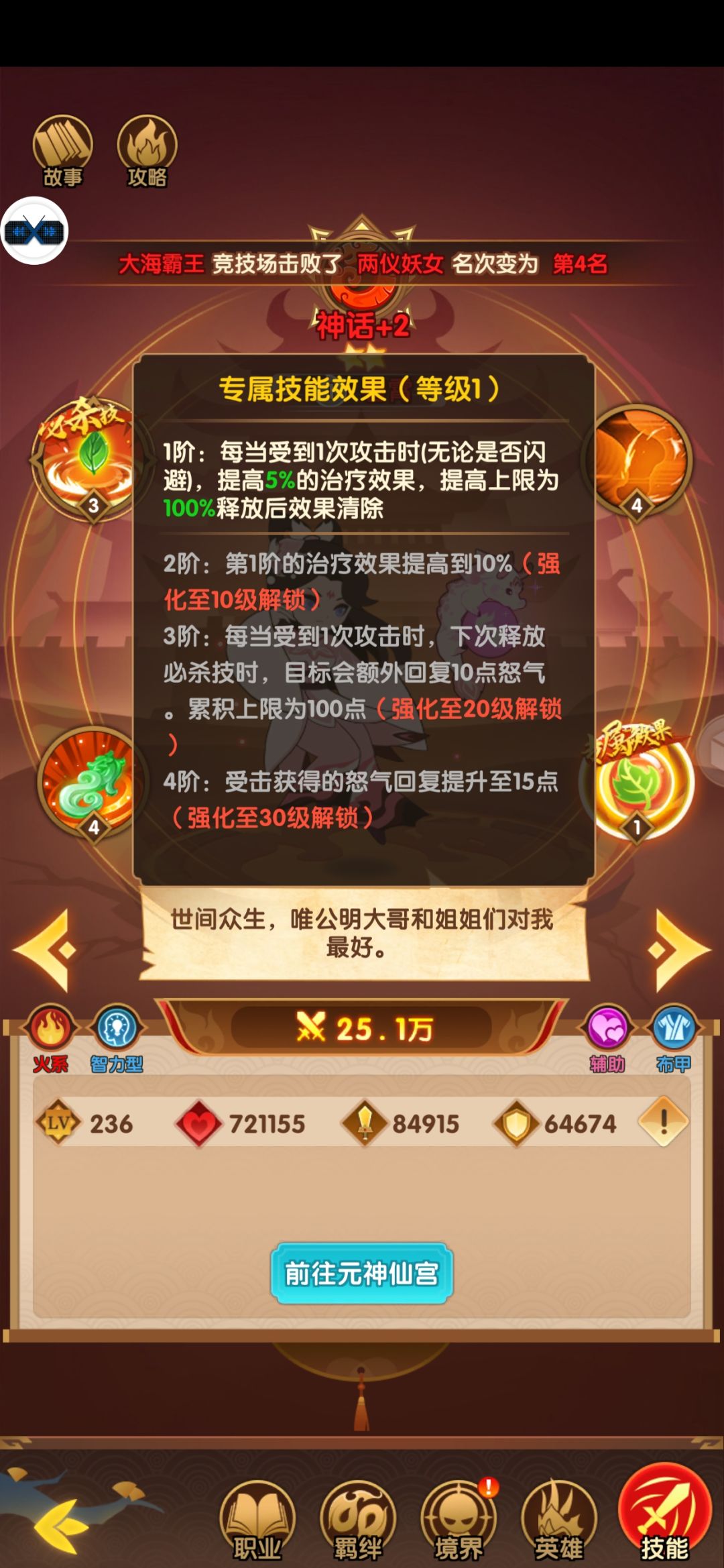 看技能描述,可以了解,这个英雄,也可以为火系英雄提供很不错的伤害,有想法的可以整一个。这个没法细说,毕竟是一个阳系英雄。他的获取难度和纯火系不是一个难度,所以,有想法的小伙伴可以整一个,毕竟阳系和三系都能凑成羁绊。