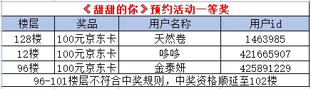 感谢各位甜甜的小伙伴参与本次预约活动,由于活动截止时间为6月16日23:59,总抽取楼层数为207层,以下为中奖名单,请中奖的小伙伴及时添加我们的客服小姐姐QQ:3158779620,需提供个人主页截图等信息进行验证,请在7月10号前申请添加验证,超时即视为放弃奖励。