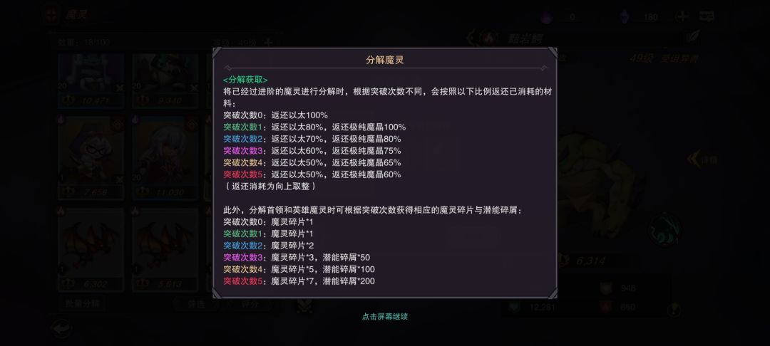 魔灵分解经验只返还部分