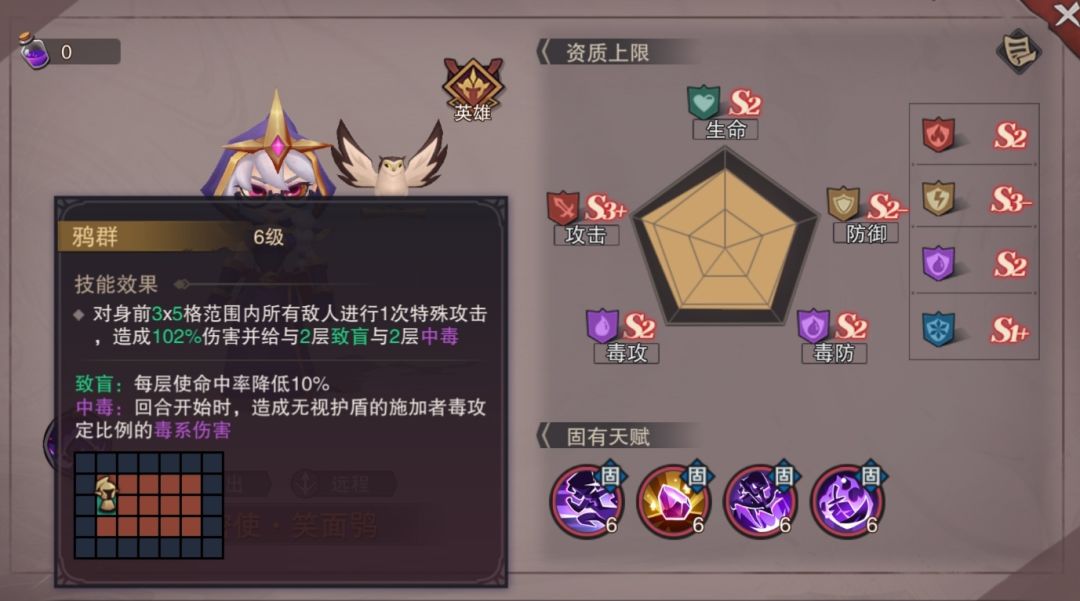 1.固有天赋栏,紫色和金色魔灵固有天赋都为四,魔灵抽出来时,随机带2~4个固有天赋,固有天赋数量无法通过后天改变,所以没有满天赋就只能当狗粮